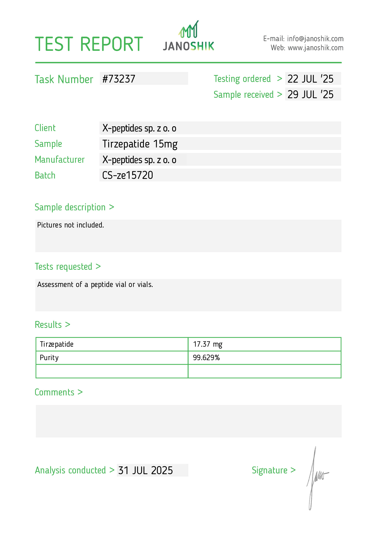 Tirzepatide czuć,że działa.Szybka wysyłka,solidnie zapakowane.Polecam